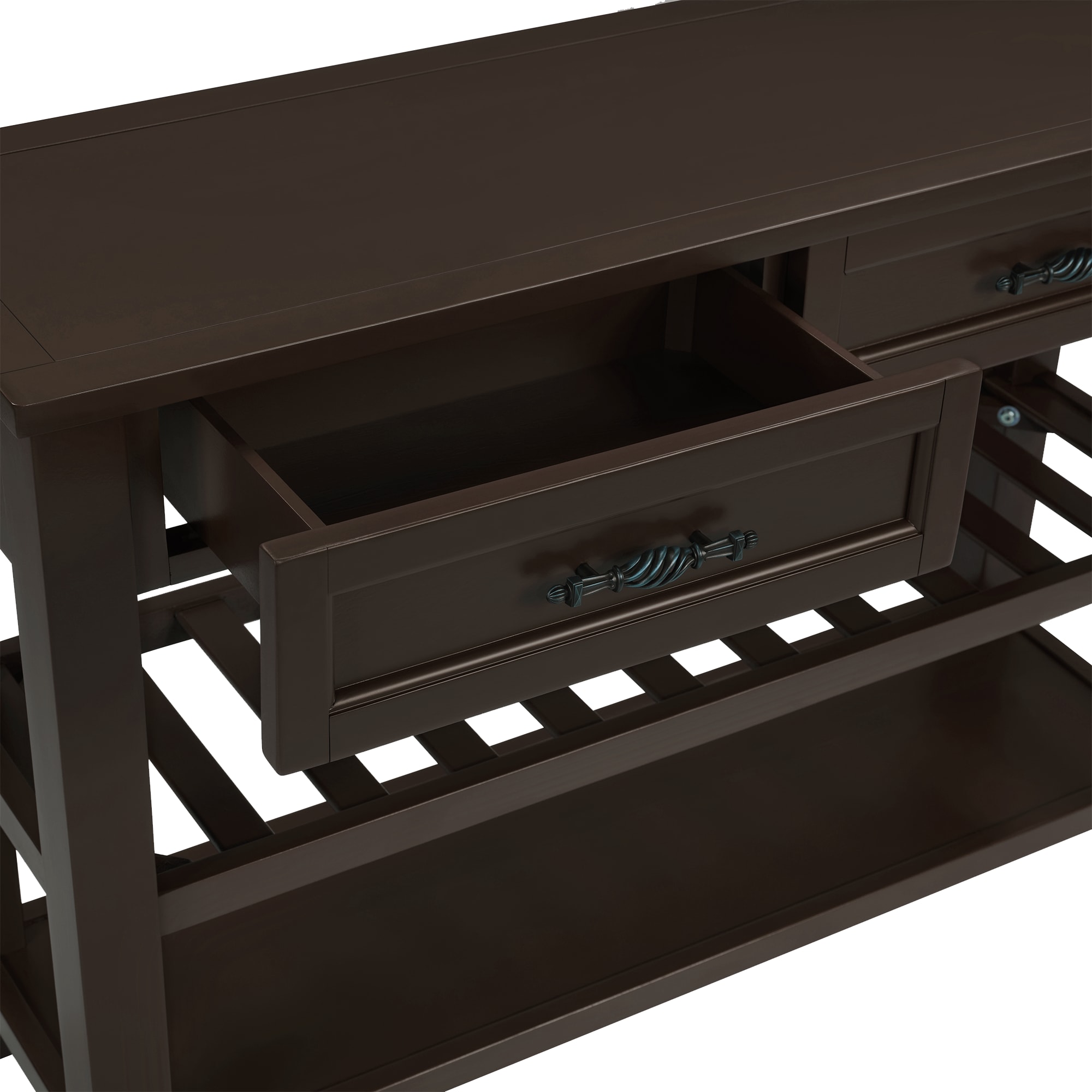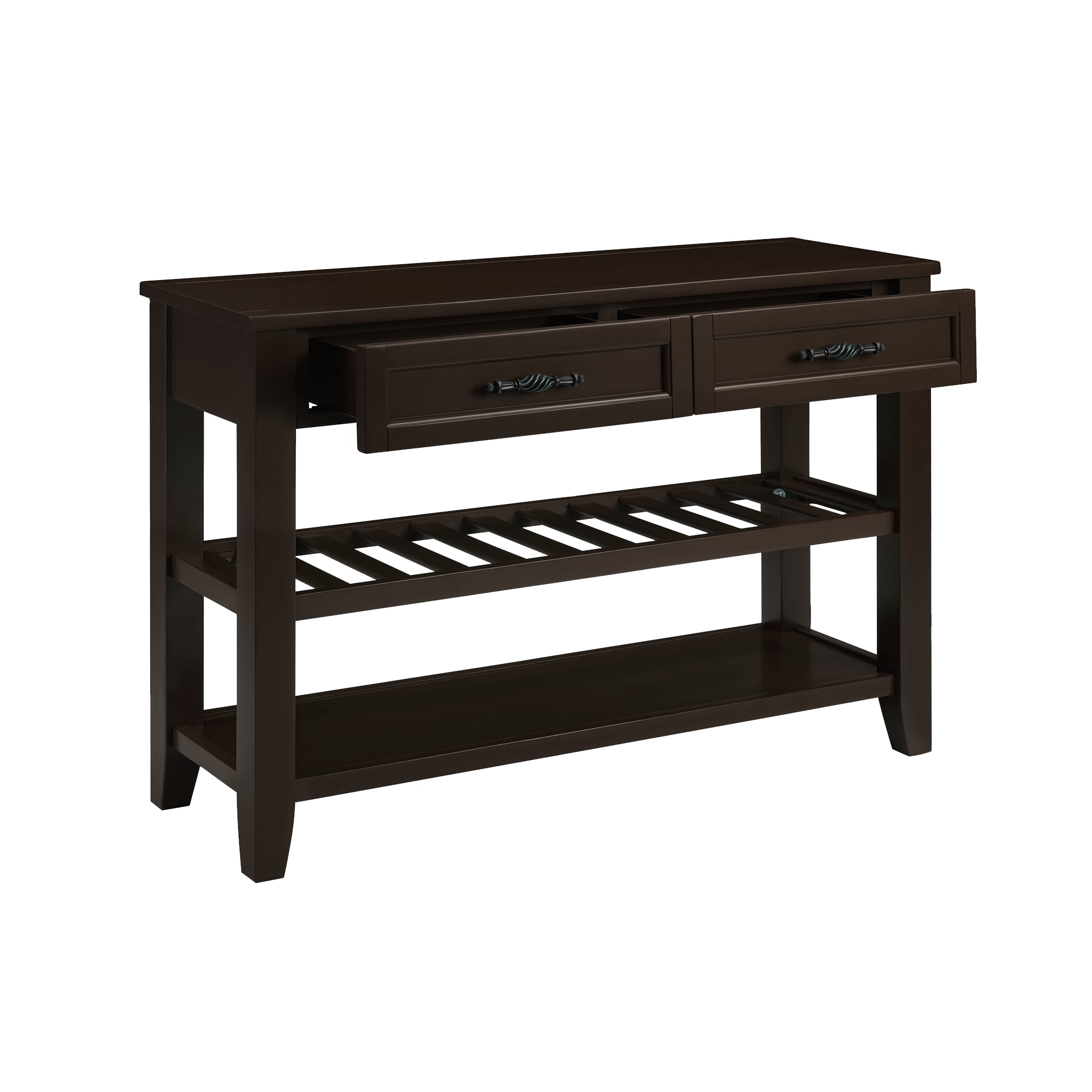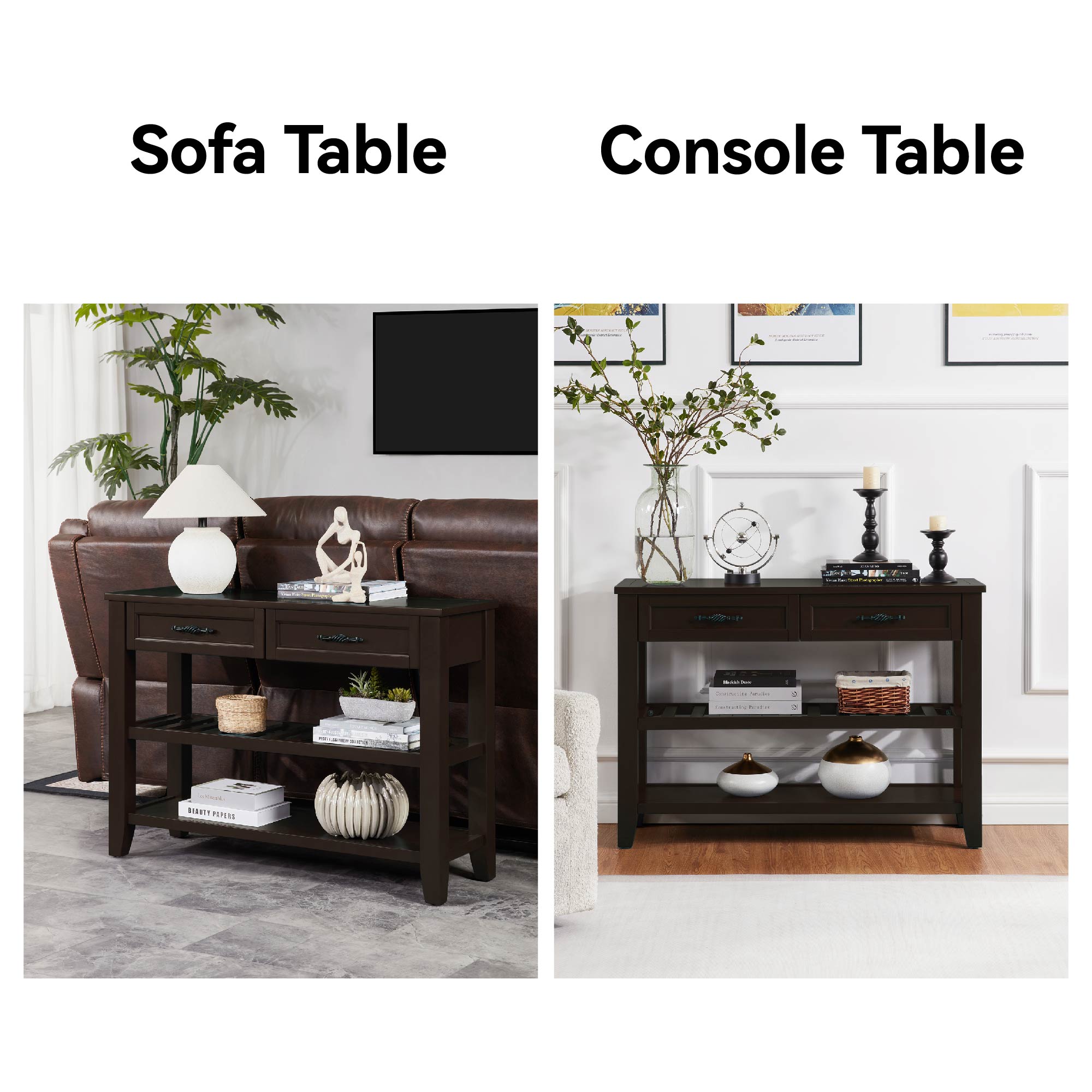 【Functional Storage】: Equipped with two spacious drawers and two bottom shelves, this console table provides ample storage space for organizing your essentials, keeping your living area neat and clutter-free.